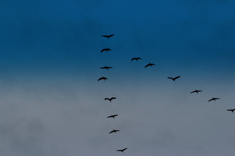 Im März und Oktober rasten hier in der Umgebung bis zu 50.000 Kraniche.