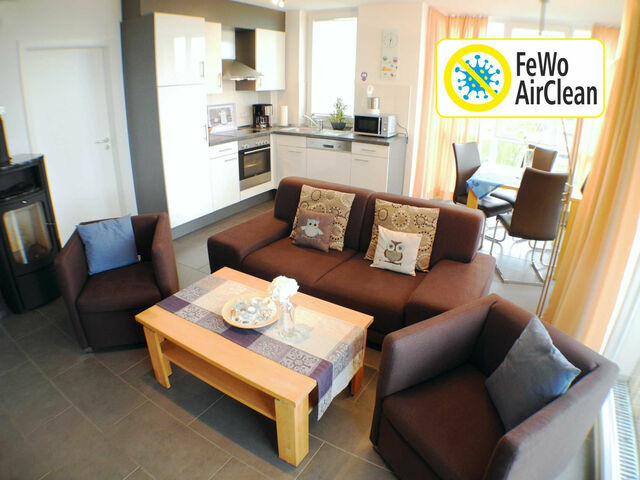 Dieses Feriendomizil ist mit dem FeWoAirClean - Siegel ausgezeichnet. Das Haus ist im Wohnzimmer mit einem Luftreiniger ausgestattet, der Hausstaub, Viren und Bakterien filtert. Die moderne Küche ist mit zahlreichen hochwertigen Küchengeräten ausgestattet, die Ihnen ein großartiges Kocherlebnis garantiert. Zusätzlich stehen Ihnen ein Mixer und ein Wasserkocher zur Verfügung. Zwei Fernseher, eine Playstation 3 mit einer Auswahl an Spielen, ein DVD-Player mit einer Auswahl an DVD's, ein CD-Player mit einer Auswahl an CD's, Bücher und Spiele stehen Ihnen für die Zeit Ihres Urlaubs zur Verfügung. Auf unserem Balkon stehen Ihnen 4 Gartenstühle zur Verfügung. In der Wohnung liegen Freizeitführer und Umgebungskarten für Sie bereit. Von Mai bis September steht Ihnen ein Strandkorb zur Verfügung.
