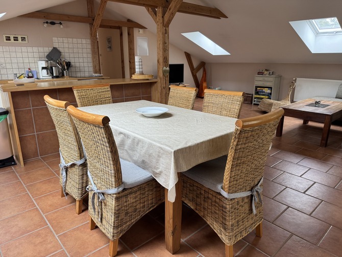 Charmante 3-Zimmer-Dachgeschoss-Wohnung in einem ruhigen Backsteinhaus mit großem Garten. 160 qm Haus, 60 qm Wohnfläche unter Dachschrägen – hell, gemütlich und lichtdurchflutet. Ideal für Familien bis 6 Personen